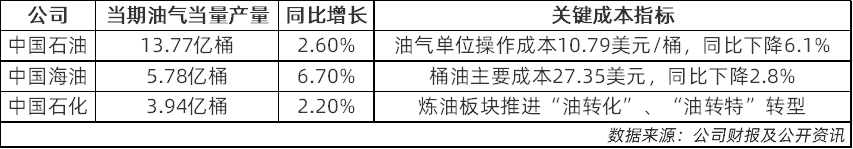 上表数据显示,“三桶油”在2025年前三季度产量均实现同比增长,同时关键成本指标持续下降,例如中海油的桶油成本长期低于28美元/桶。